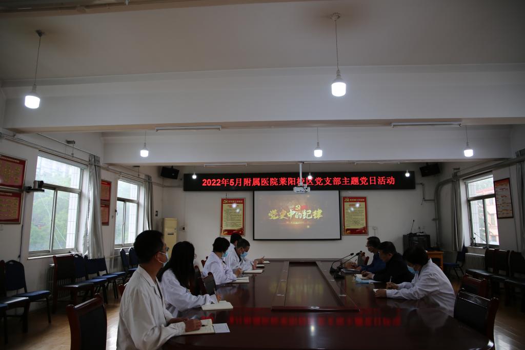 党员们对习近平总书记重要讲话精神进行专题学习研讨,观看了学习强国视频《党史中的纪律》,并展开了热烈的交流,大家纷纷表示会遵守党纪党规、坚定政治立场,以饱满的精神状态在本职岗位上发挥党员的先锋模范作用。附属医院莱阳校区党支部书记辛先贵在讲话中要求全体党员慎终如始、再接再厉,将疫情防控常态化与教育教学、实习学生带教等重要工作同步推进,鼓励年轻中医大夫继承创新中医药文化,积极促进学科的交叉与发展,践行习近平总书记所说的“不断推进知识创新、理论创新、方法创新”,以实际行动迎接党的二十大胜利召开。