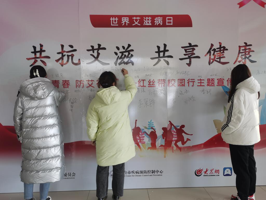 2022年12月1日是第三十五个“世界艾滋病日”。为加强艾滋病防治宣传教育,推动大学生积极学习艾滋病防治相关知识,12月1日,我校联合烟台市牟平区疾控中心举办了预防艾滋病宣传教育活动。本次活动通过防艾科普宣传、承诺签名、佩戴“红丝带”、线上防艾专题讲座等多种形式,向学生宣传艾滋病的危害及预防知识,养成健康文明的行为方式和良好的生活习惯。