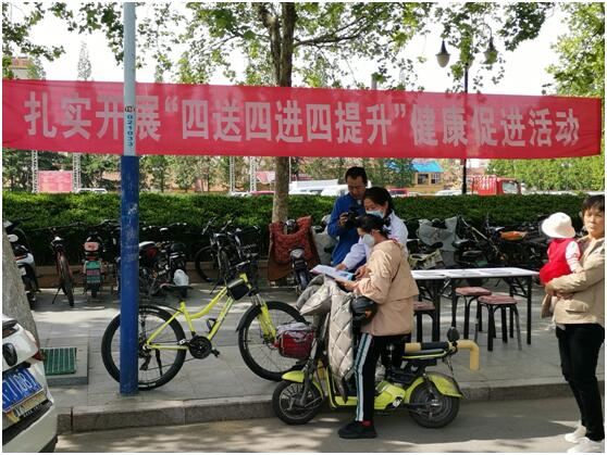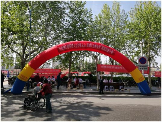 5月8日在莱阳市工人文化宫,附属医院组建义诊队伍参加莱阳市卫健局组织的“四送四进四提升”健康促进行动。