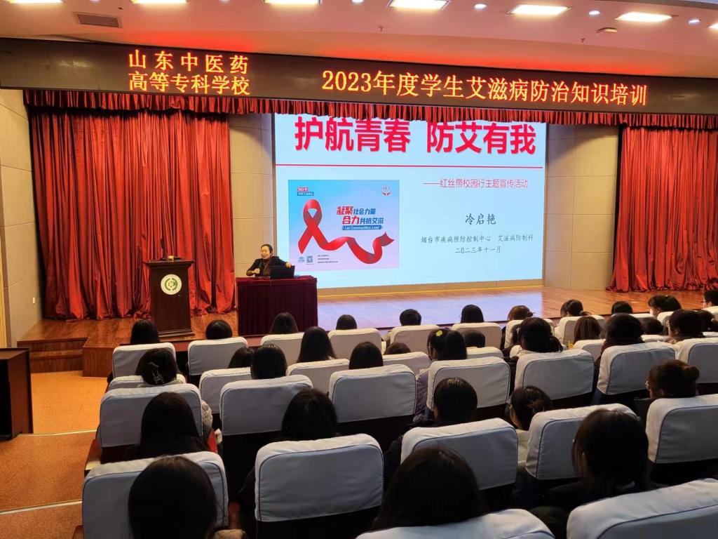 为进一步促进大学生健康责任意识,在第36个世界艾滋病日即将到来之际,11月28日下午,学校医院、医学系一起联合烟台市疾控中心在学校综合楼一楼报告厅举行了“护航青春 防艾有我”红丝带校园主题宣传活动。