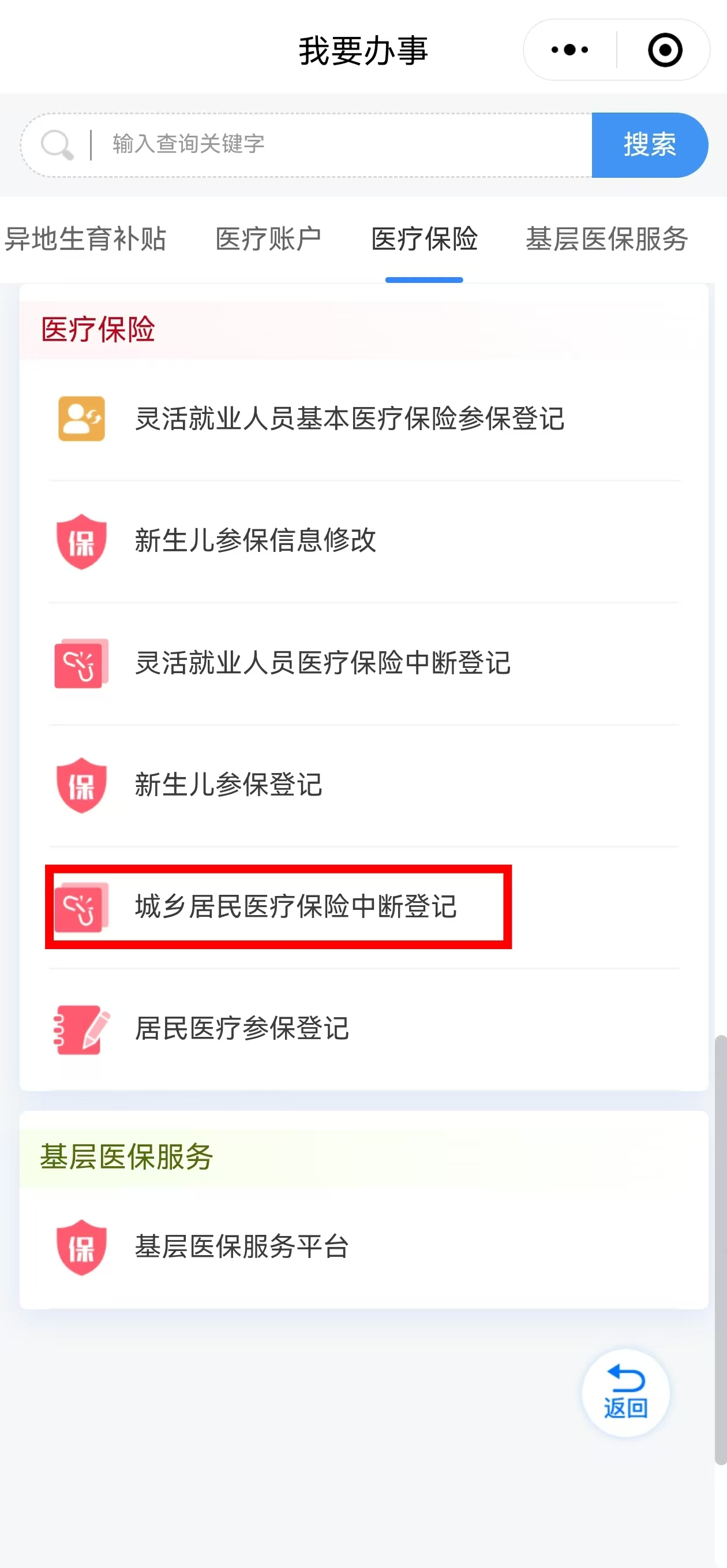 4.毕业后在烟台市外参加职工医疗保险或居民医保的,需先办理烟台市居民医疗保险停止参保,流程为:关注“烟台市医疗保障局”微信公众号,点击“医保服务”-“办事大厅”-“我要办事”-“城乡居民医疗保险中断登记”,根据实际情况,选择中断原因并提交。提交后即时生效。